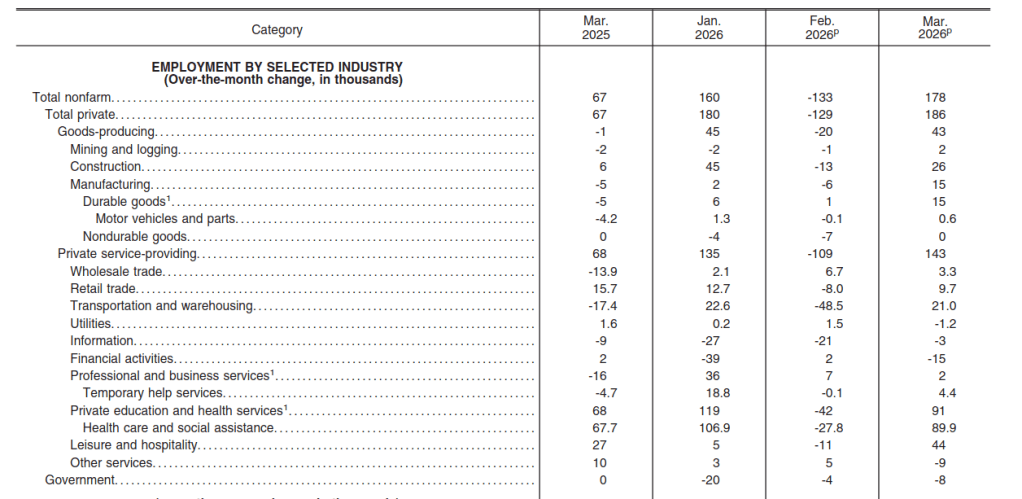 The jobs report came out with a spicy 178,000 jobs created, after last month’s [insert sad trombone], job losses. Looking down the list, the bulk of the jobs came in from health care, leisure, and transportation. Health care might be creating a lot of jobs as baby boomers start arriving at their 80s, but health care workers can be low margin jobs. While it may produce jobs, it may not produce investment opportunities. And like many difficult, uncomfortable jobs in America, it is largely staffed by immigrants, against which the current administration has initiated a pogroms as part of ethnic-cleansing lite. Construction, likely because of data centers, did fairly well. With information and financial services being the biggest losers.
