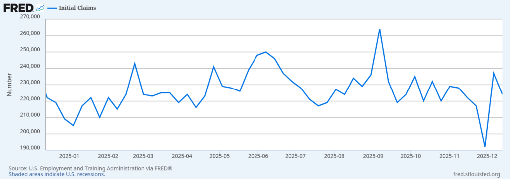 The number of first time jobless claims (a weekly statistic measuring the number of folks filing their first claim for unemployment insurance when they become unemployed) has been bouncing around 250,000 for the last year and change.