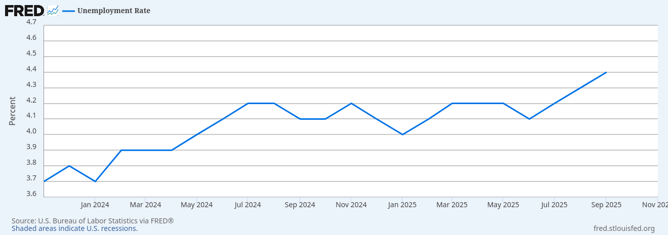 As Q3 GDP arrives, it’s above expectations. I hate anecdotal accounts as a basis for inferring trends, but we have had report after report of worsening conditions for individuals. Whether it’s visits to food banks or layoffs, or retailers pointing to weaker consumers, it feels like Q3 GDP should not have come in at 4.3%. I’m certainly not saying anything ridiculous, like the number is a fabrication or it should have been something negative. I live in the real world (or at lest do my best to discern the real world around me). Somewhere in the 3.5 to 2.5% range felt reasonable.
