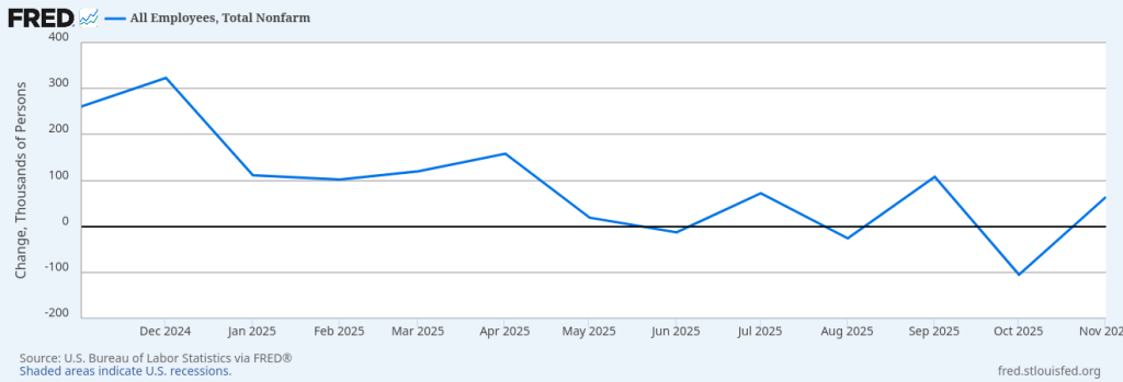 This is why there is no magic single number, and no magic single sample of that number, that gives you a picture of the US economy. From the numbers, the labor market looks slack but not recessionary. It seems to back up the anecdotes of job hugging (where employers and employees may want to part ways but decide it’s better not to part ways right now), and new entrants having a difficult time finding a job. If it’s true that 70 million Americans engage in some kind of “gig” work, that’s nearly half the labor force (about 160 million participants). And maybe a weak jobs number isn’t as bad as it sounds if people can enter the gig economy instead of a “regular” job, and those people are under-counted. (Setting aside issues of job security, benefits, and the impact of under-employment). Is the labor market indicating recession?